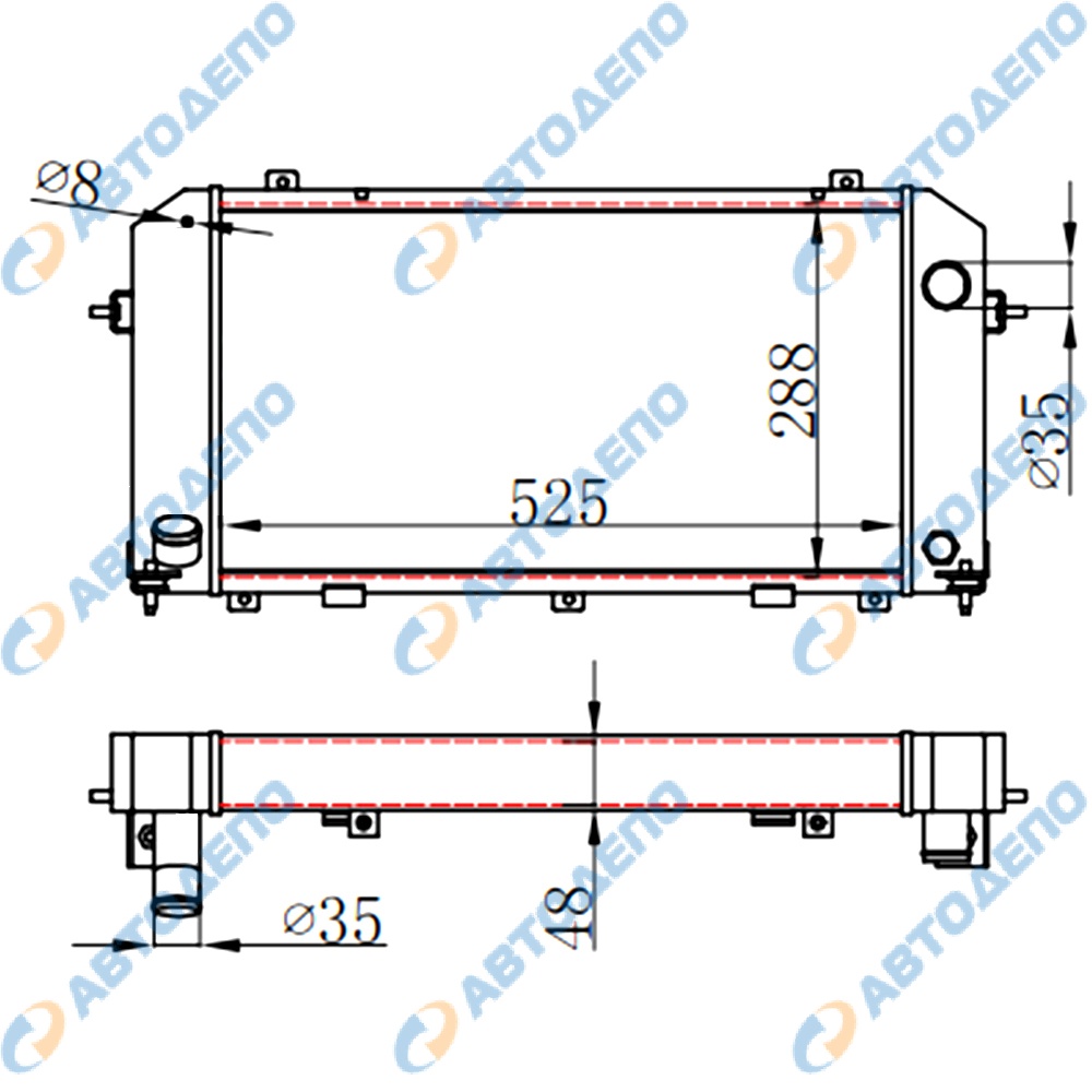 Радиатор охлаждения двигателя ( арт. TO-0459-48-K )