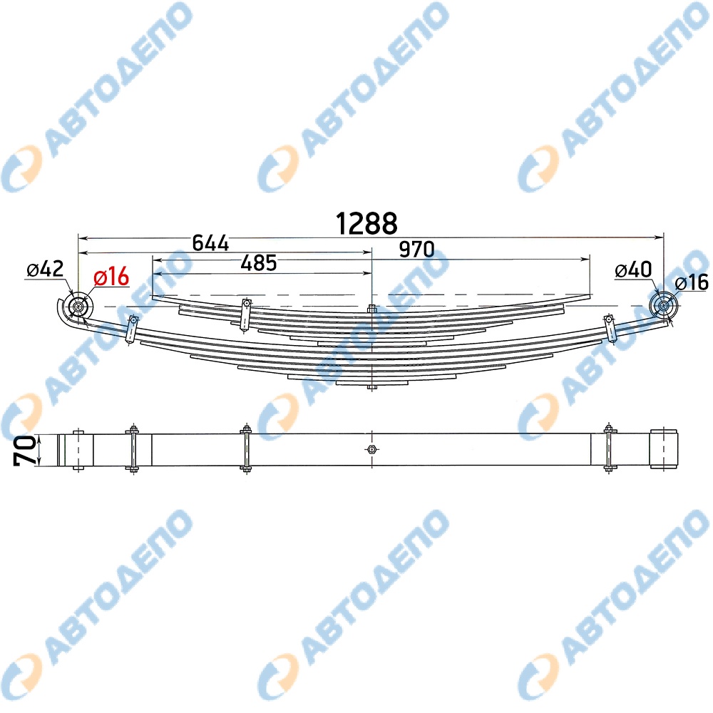 Рессора в сборе, задняя, с подрессорником (левый руль), УЦЕНКА- ВСЕ САЙЛЕНТБЛОКИ НА 16ММ ( арт. IZNPR75R-FLH-УЦЕНКА )