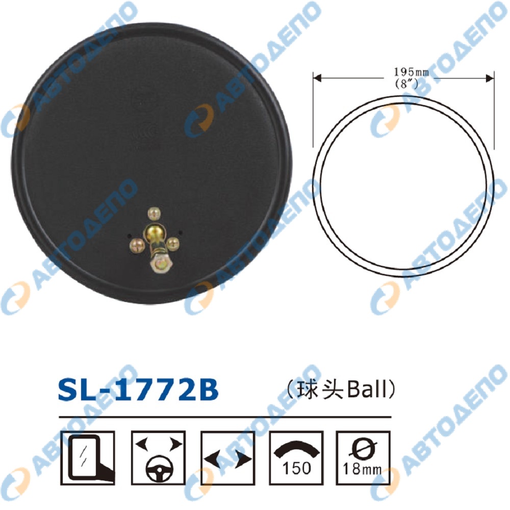 Зеркало заднего вида универсальное d195mm, крепление болт ( арт. SL-1772B )