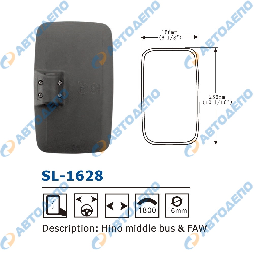 Зеркало заднего вида 256x156 mm ( арт. SL-1628 )