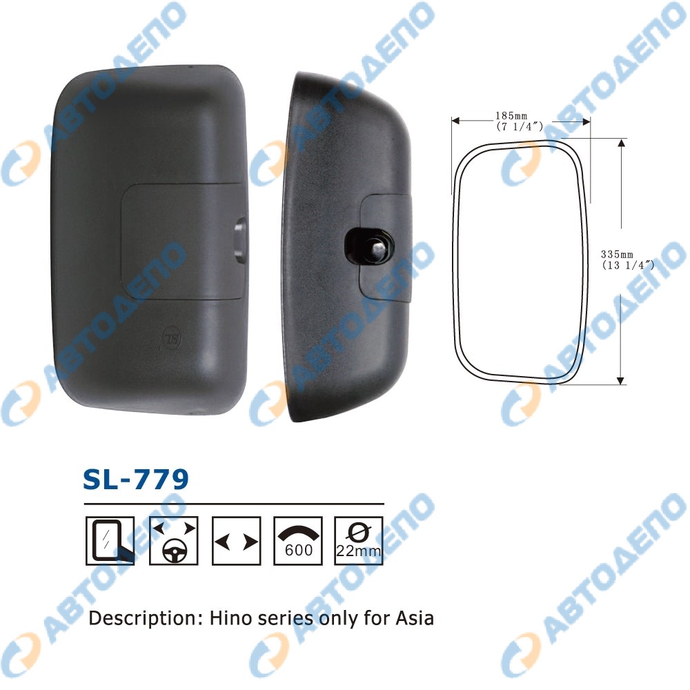Зеркало заднего вида 335x185mm, крепление шар 22mm ( арт. SL-779 )