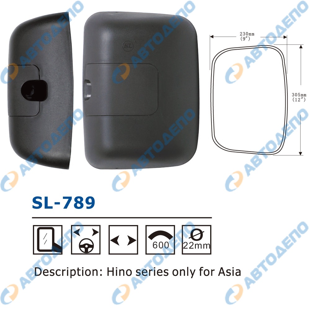 Зеркало заднего вида 305x230mm, крепление шар 22mm ( арт. SL-789 )