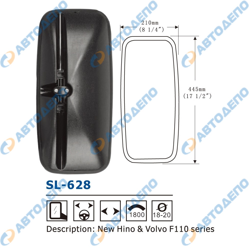 Зеркало заднего вида 445x210mm, крепление хомут 18-20mm ( арт. SL-628 )
