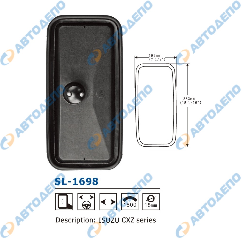 Зеркало заднего вида 191x383mm ( арт. SL-1698 )