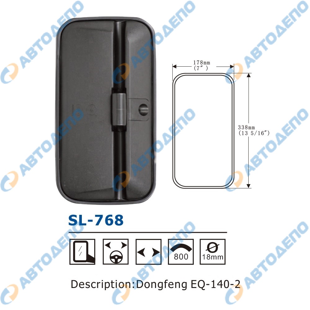 Зеркало заднего вида 338x178mm, крепление хомут 18mm ( арт. SL-768 )