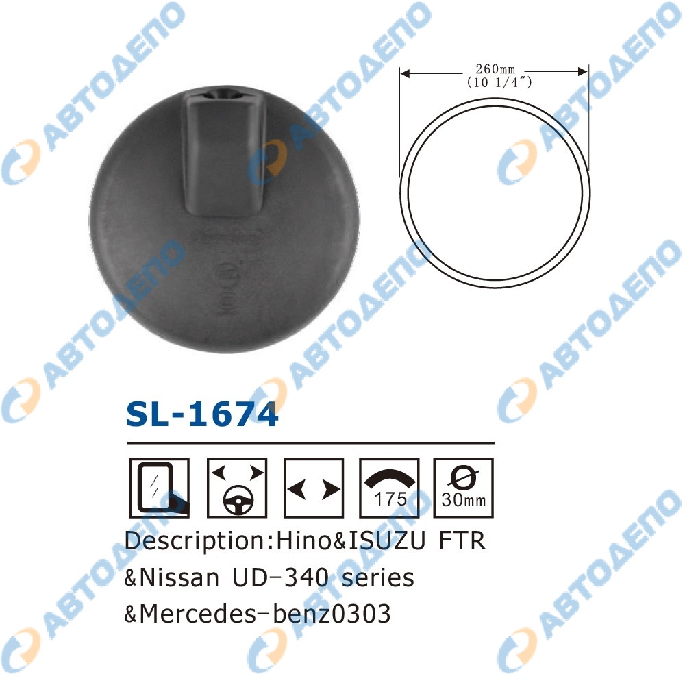 Зеркало заднего вида d260mm, крепление шар 30mm ( арт. SL-1674 )