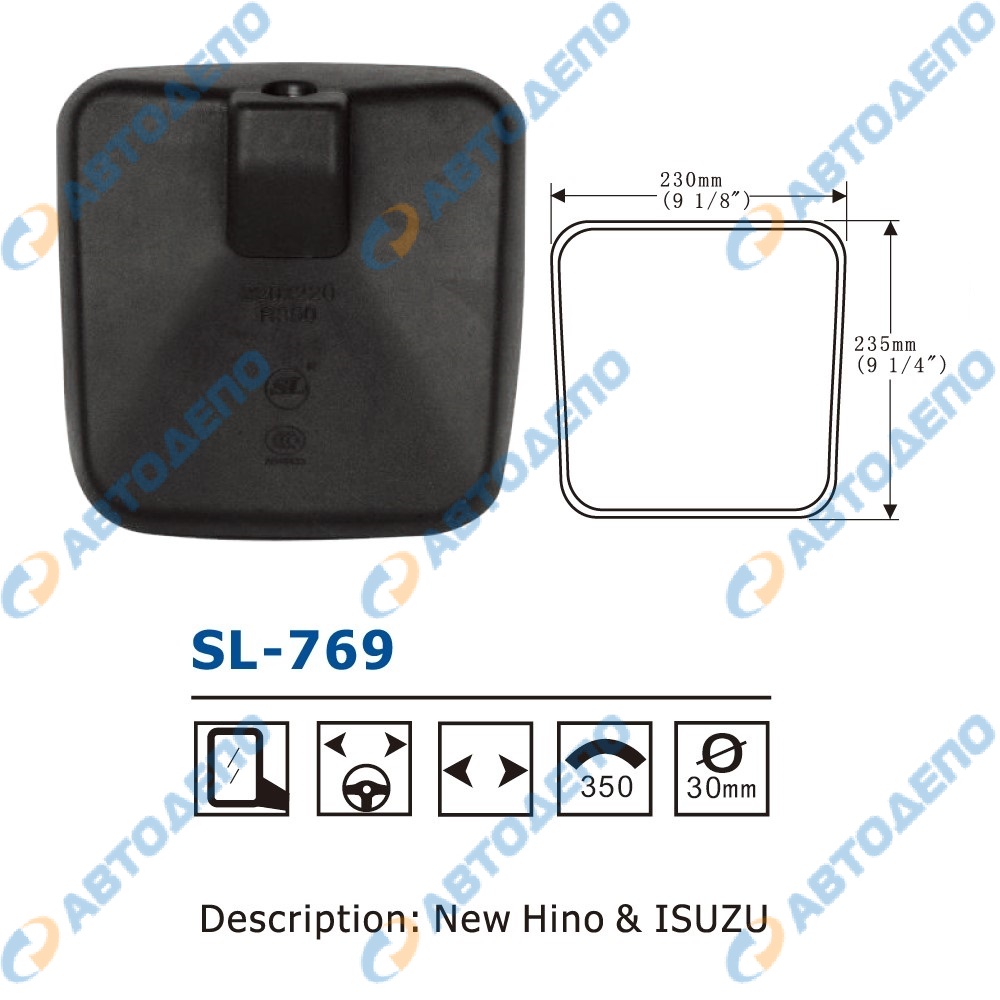зеркало заднего вида 230x235mm, крепление шар 30mm ( арт. SL-769 )