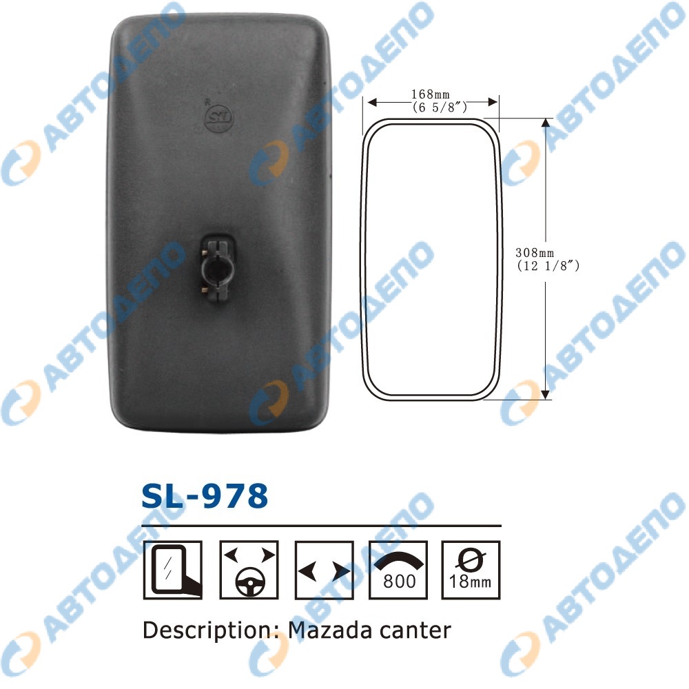 зеркало заднего вида 308x168mm, крепление шар 18mm ( арт. SL-978 )
