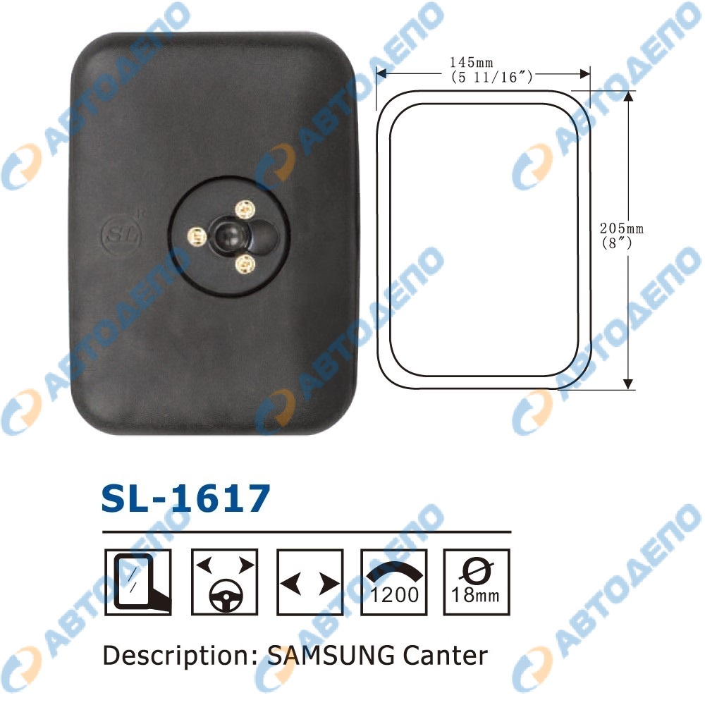 Зеркало заднего вида 205x145mm, крепление шар 18mm ( арт. SL-1617 )