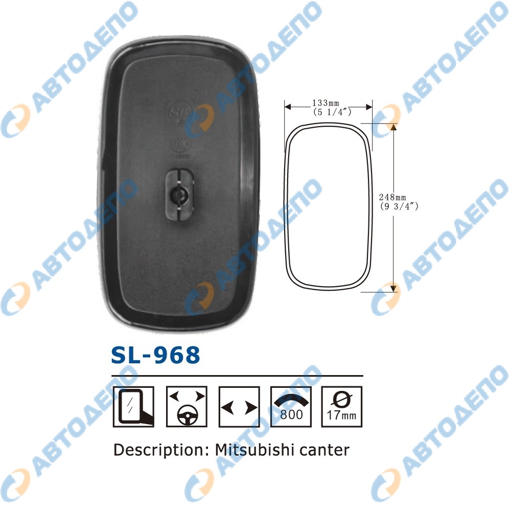 Зеркало заднего вида 248x133mm, крепление шар 17mm ( арт. SL-968 )
