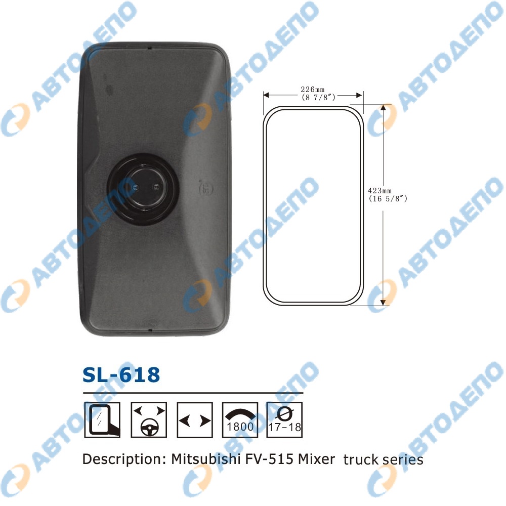 зеркало заднего вида 226x423mm ( арт. SL-618 )
