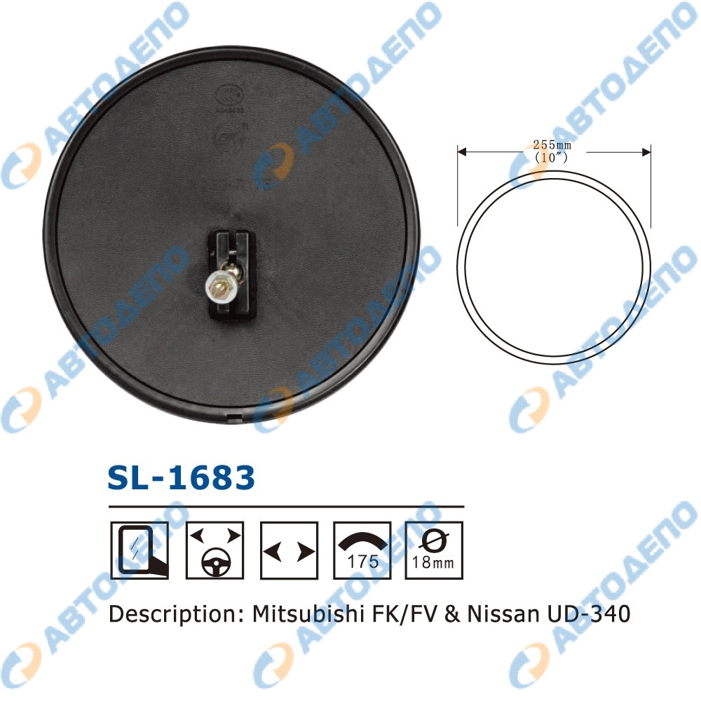 зеркало заднего вида d255mm, крепление болт ( арт. SL-1683 )