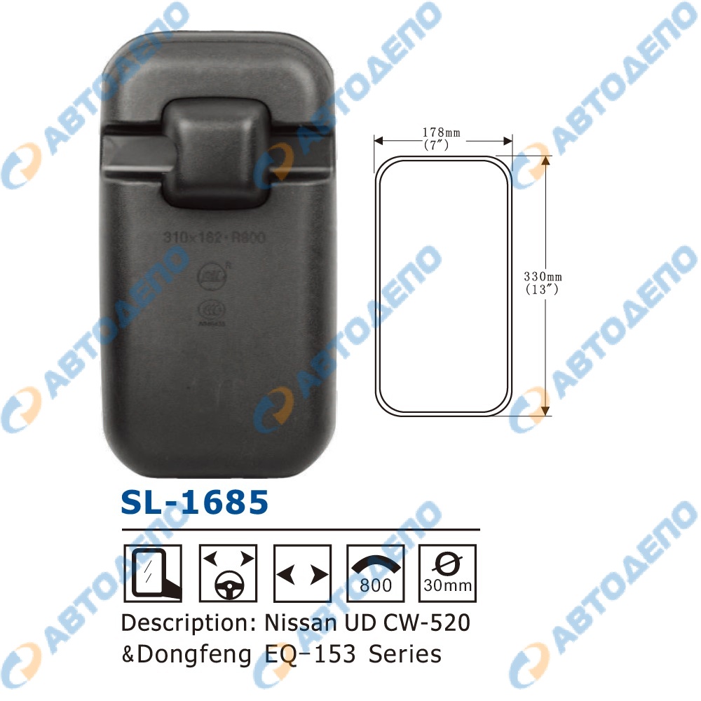Зеркало заднего вида 330x178 mm ( арт. SL-1685 )
