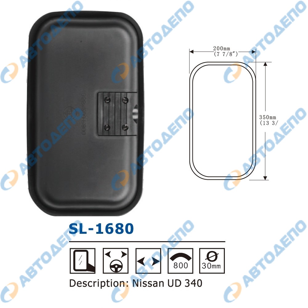 Зеркало заднего вида 200x350mm ( арт. SL-1680 )