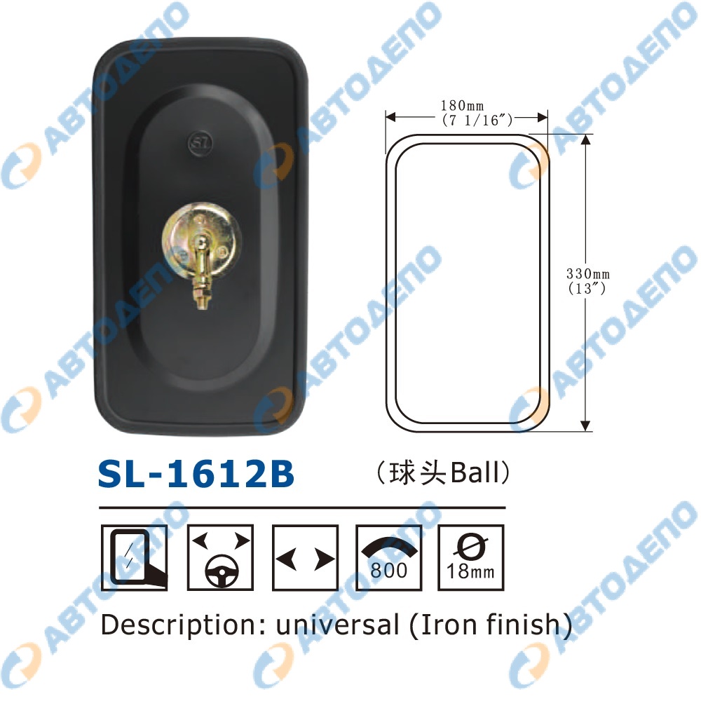 зеркало заднего вида универсальное 330x180mm, крепление болт ( арт. SL-1612B )