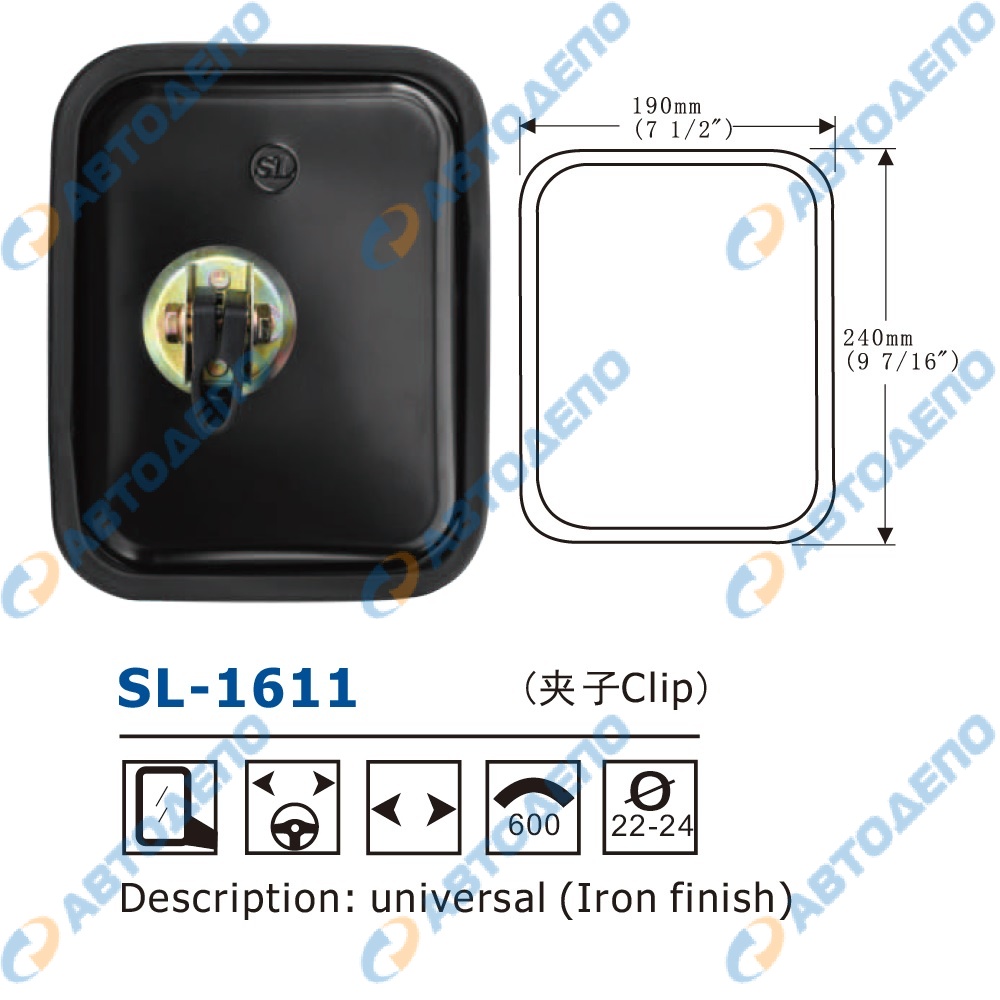 зеркало заднего вида универсальное 240x190mm, крепление хомут 22-24mm ( арт. SL-1611 )