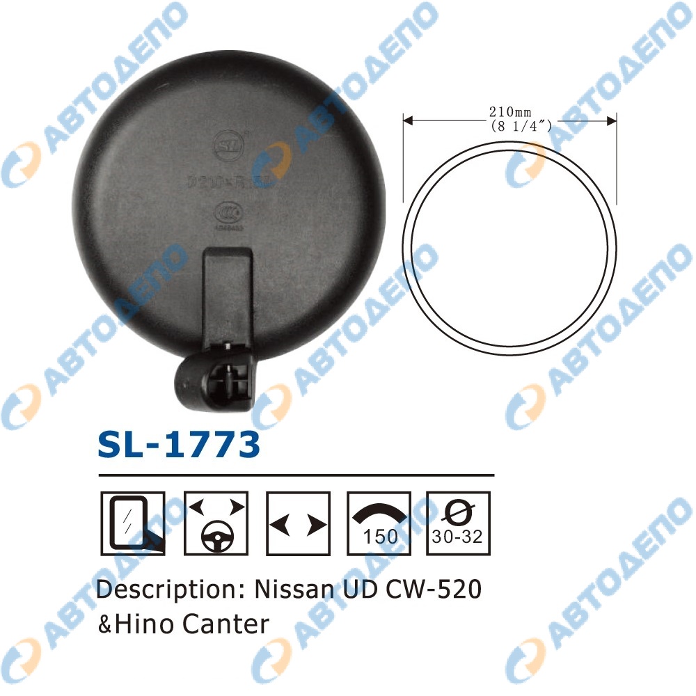 Зеркало заднего вида универсальное, d210mm, крепление хомут 30-32mm ( арт. SL-1773 )