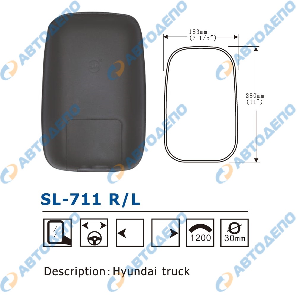 Зеркало заднего вида L сторона, 280x183mm, крепление шар 30mm ( арт. SL-711L )