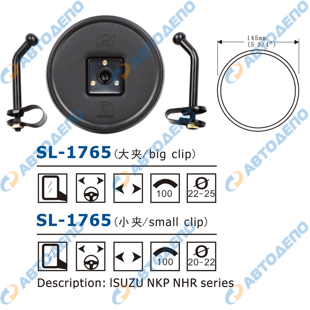 Зеркало заднего вида универсальное d145mm, крепление хомут ( арт. SL-1765 )