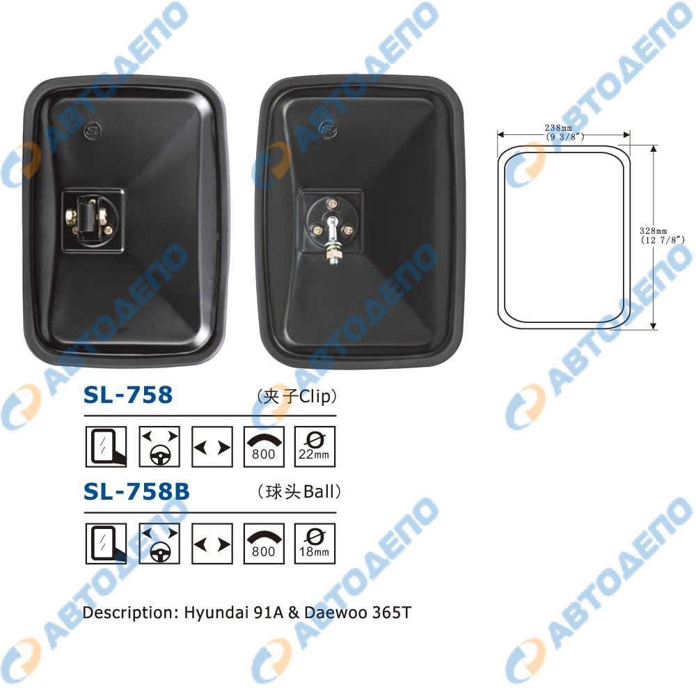 зеркало заднего вида, крепление болт, 328x238mm SL-758B ( арт. SL-758B )