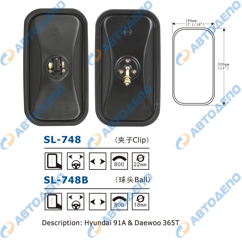 зеркало задного вида, крепление хомут, 330x180mm SL-748 ( арт. SL-748 )