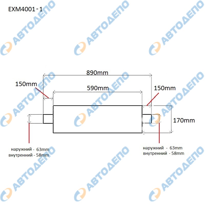 Бочка глушителя ( арт. EXM4001-1-AUTODEPO )